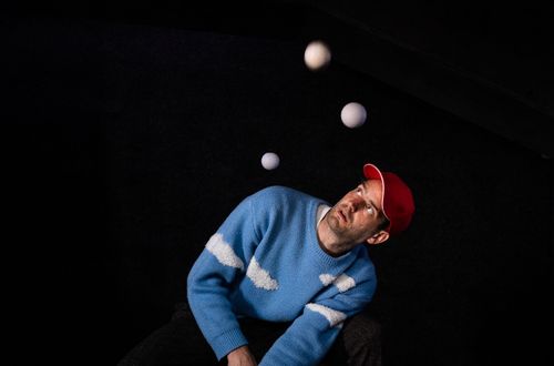 For Ballroom, you take a seat in a converted lorry. Inside, visual artist Lodewijk Heylen has created a concrete set in which juggler Stijn Grupping, thanks to a lot of practice and a little magic, creates an incredible dance of bouncing balls. Accompanied by the sounds of musicians Jochem Baelus and Frederik Meulyzer, he takes you on a wordless journey.
